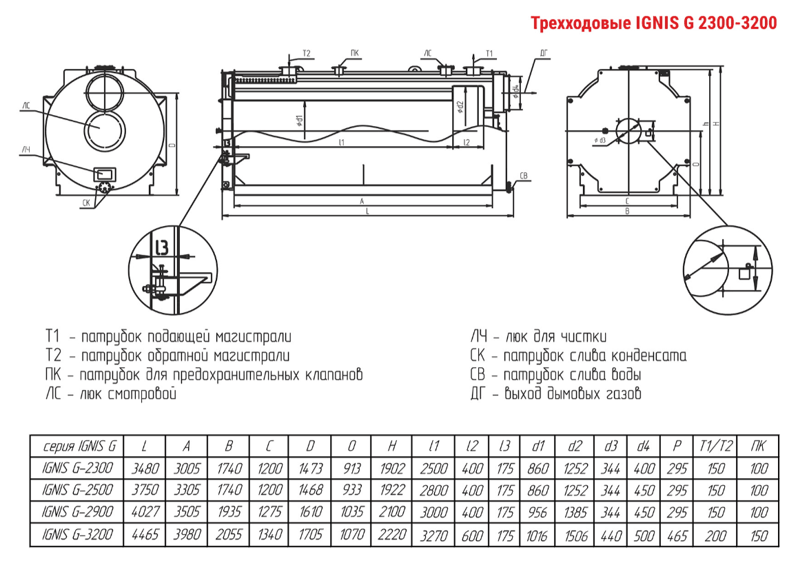 Технические характеристики водогрейного трёхходового котла ARCUS IGNIS G-2900